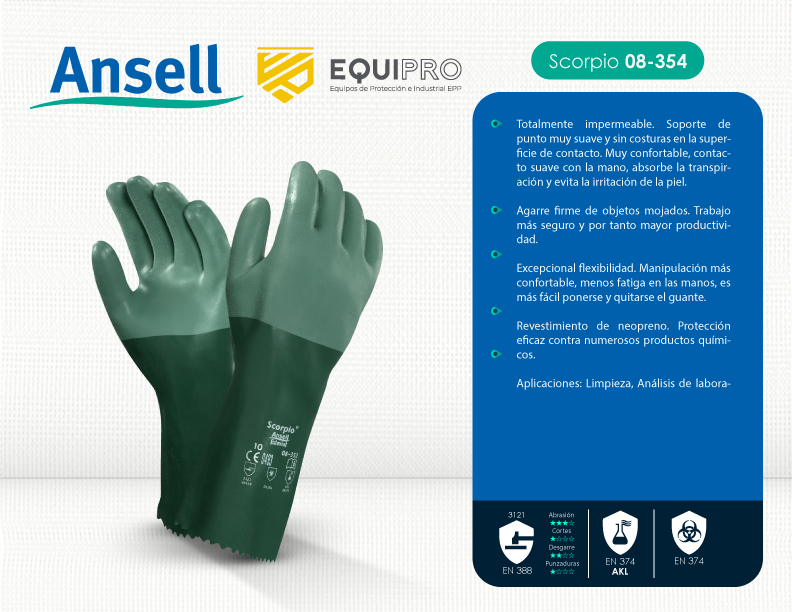 Descripción: Totalmente impermeable. Soporte de punto muy suave y sin costuras en la superficie de contacto. Muy confortable, contacto suave con la mano, absorbe la transpiración y evita la irritación de la piel. Agarre firme de objetos mojados. Trabajo más seguro y por tanto mayor productividad.