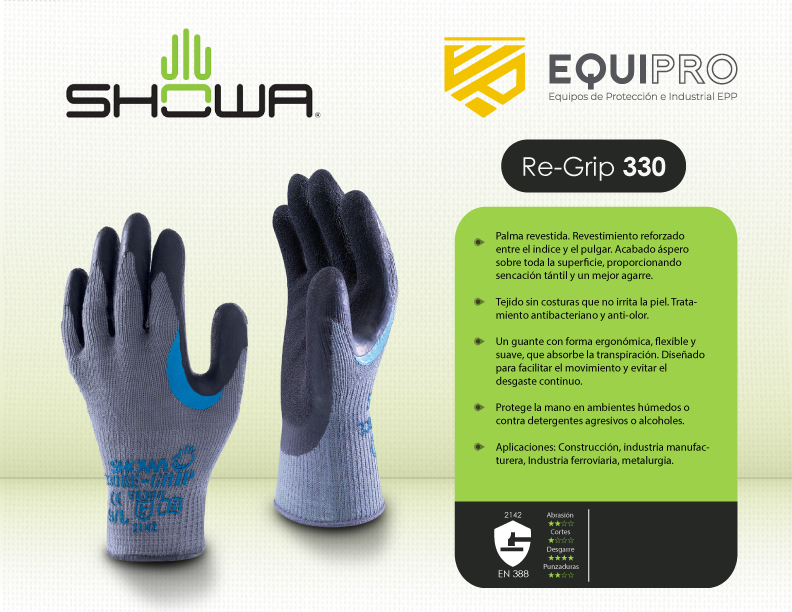 Descripción: Palma revestida. Revestimiento reforzado entre el índice y el pulgar. Acabado áspero sobre toda la superficie, proporcionando sensación táctil y un mejor agarre. Tejido sin costuras que no irrita la piel. Tratamiento antibacteriano y anti-olor. Un guante con forma ergonómica, flexible y suave, que absorbe la transpiración. Diseñado para facilitar el movimiento y evitar el desgaste continuo.