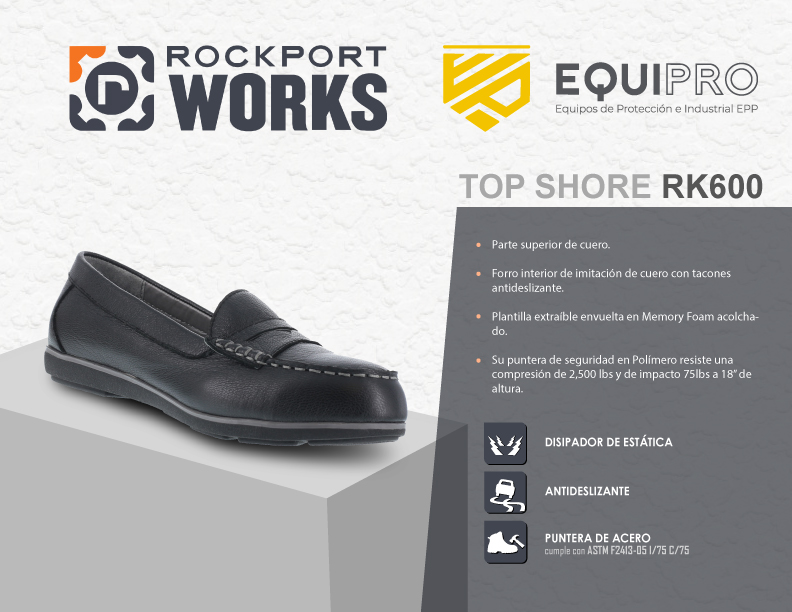 Parte superior de cuero. Forro interior de imitación de cuero con tacones antideslizante. Plantilla extraíble envuelta en Memory Foam acolchado.